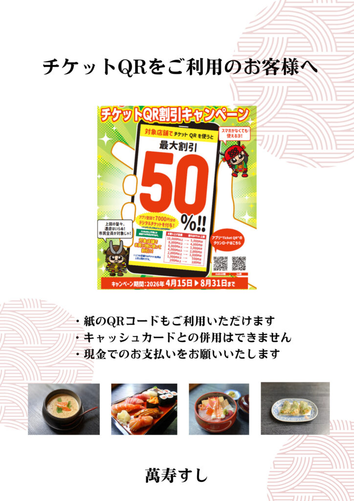 昨日より上田市のチケットQRがスタートしました。今回は8月までと期間も少し長めですね。当店ではスマホ・紙チケットの両方をご利用いただけます。キャッシュカードとの併用はできませんのでご了承ください。また、取り扱いに慣れるまでお会計時にお待ちいただくこともあると思いますが何卒ご理解ご協力のほどよろしくお願いいたします。
